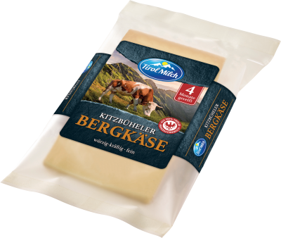 Der Kitzbüheler Bergkäse wird mindestens 4 Monate gereift und erhält dadurch seinen kräftigen, aromatisch-pikanten Geschmack und seine geschmeidige Konsistenz. Die vereinzelt auftretende erbsengroße Lochung ist typisch für diesen Käse. Ein Genuss für jeden Käseliebhaber.